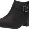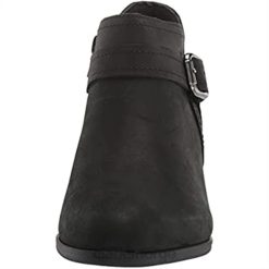 - en stropp og spennedetalj gir stil, mens en kort, forskjøvet overlinje og en praktisk glidelåslukking gjør det lett å gå inn i denne støvletthælen