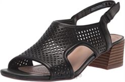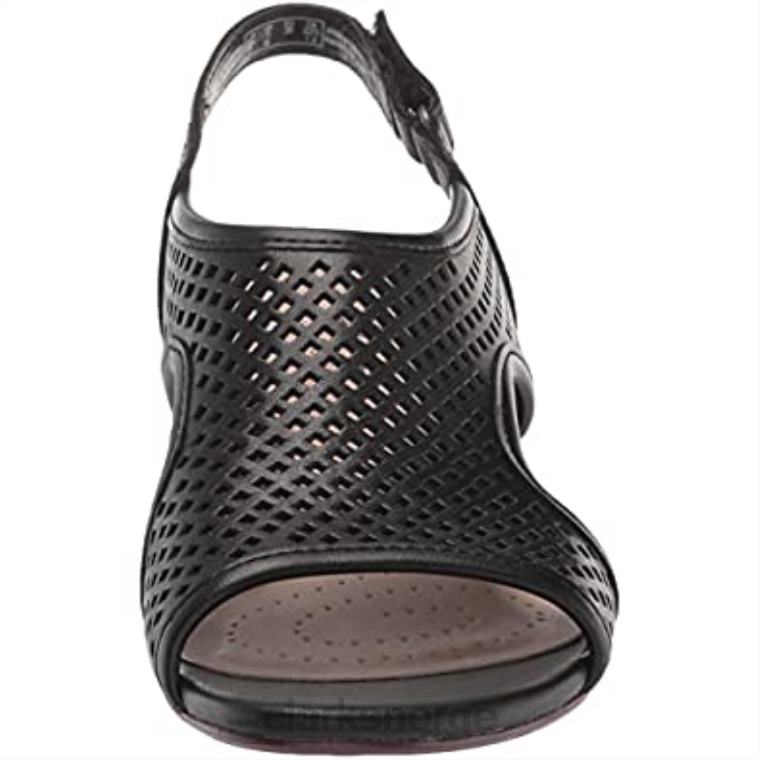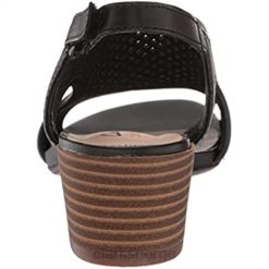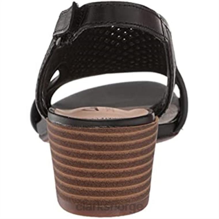 - en skulpturert midtblokkhæl og ansvarlig fremskaffet svart skinn gir sandal caroleigh star en førsteklasses, moderne følelse