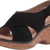 Clarks kvinner kvinners giselle cove wedge sandal clarks svart skinn 8N86P1093 Svart lær