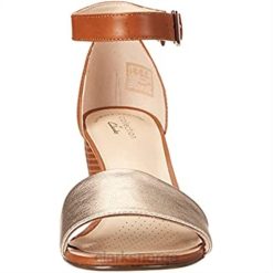 - hælhøyden er 2 1/2 tommer og fargen er metallisk/brunt skinn.