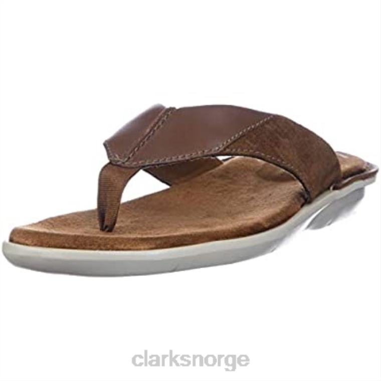 Clarks menn brunt skinn clarks herre ellison enkel flip-flop 8N86P1168 brunt skinn