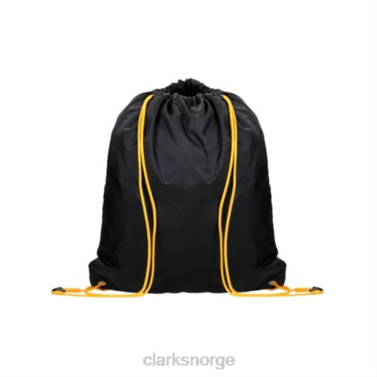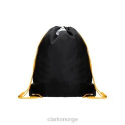 denne klassiske vesken med snøring er ideell for sportssett for barn. en praktisk, tørr treningsveske i svart med kontrasterende gule bærestropper og en dedikert plass foran for barnets navn og klassedetaljer. den perfekte løsningen på pe kit-problemer