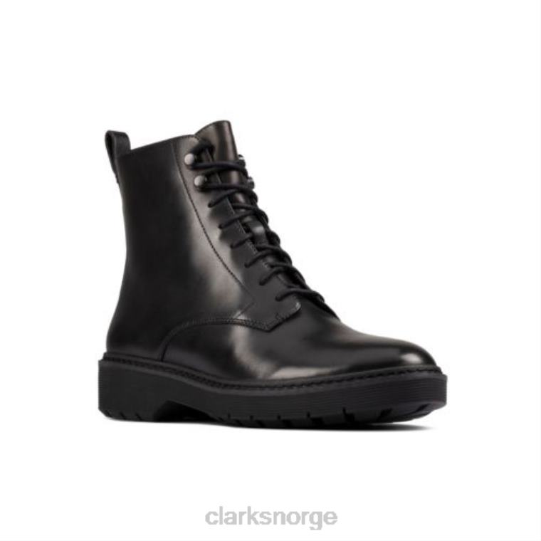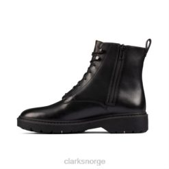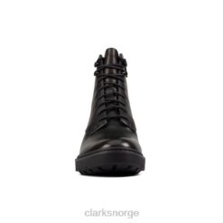 legg litt spiss på garderoben din med disse snørestøvlene. den minimalistiske svarte skinnoverdelen er ferdig med sømmer som går tilbake til Clarks dna