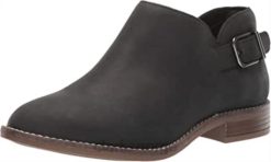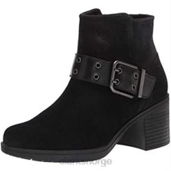 - en stropp og spennedetalj gir stil, mens en kort, forskjøvet overlinje og en praktisk glidelåslukking gjør det lett å gå inn i denne støvletthælen