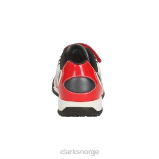 clarks in time er en fotballinspirert guttesko i iøynefallende rødt skinn. denne nye stilen har mock elastiske sidelisser og borrelåsreim for en god sikker passform.
