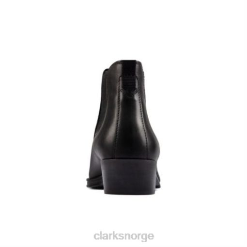 denne ankelstøvelen for kvinner i glatt, svart skinn gjenskaper en klassisk western-inspirert silhuett med elegant spiss tå og legger til elastiske paneler i chelsea bootstil. lett å ta på og allsidig nok til å ha på seg med hva som helst